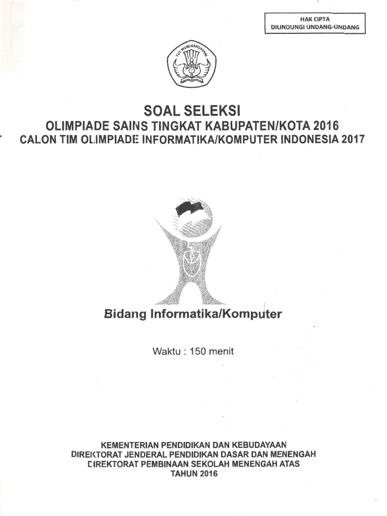 Kunci Jawaban Osk 2017 Informatika Komputer from data03.123doks.com Karena pada tingkat osk/osn ini peserta harus dapat memahami algoritma yang diberikan maka hal yang penting untuk dikuasai adalah penulisan notasi algoritma. Pembahasan soal olimpiade matematika osk sma tahun 2017 no.1 s/d no. Soal + pembahasan osk 2019 geografi (unduh). Pdf soal seleksi olimpiade sains tingkat kabupaten kota 2017. Demikianlah informasi berkenaan dengan jawaban secara rinci soal osn komputer sma/ma tingkat kabupaten/kota 2017. Insya allah channel ini akan membahas semua soal osk, osp, osn komputer secara bertahap. Pembahasan soal osk komputer 2019 no 1 cara 2. Kumpulan soal dan pembahasan osk osp atau osn informatika.