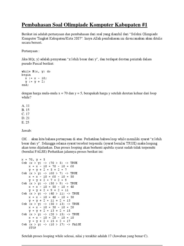 Demikianlah informasi berkenaan dengan jawaban secara rinci soal osn komputer sma/ma tingkat kabupaten/kota 2017. Pembahasan soal osk komputer informatika 2017 no 1. Dapat diselesaikan dengan rumus p(10, 7) = 604800. Kumpulan soal dan pembahasan osk osp atau osn informatika. Saya lanjutkan untuk membahas soal osk komputer 2013.